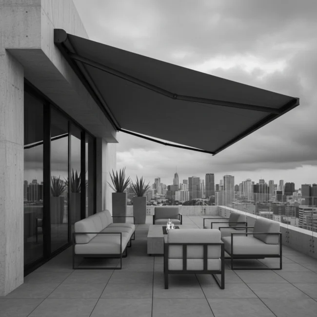 Dachmarkisen von Medle sind wetterbeständig und mit Elektroantrieb erhältlich, was eine komfortable Bedienung und eine langfristige Funktionalität gewährleistet.
