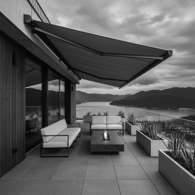 Terrassenmarkisen sind eine funktionale Lösung, die eine schnelle Beschattung des Erholungsbereichs ermöglicht und gleichzeitig die optische Leichtigkeit des Gebäudes bewahrt. Die auf extrudiertem Aluminium basierende Konstruktion garantiert Stabilität, und die verstärkten Arme sorgen für eine ideale Spannung des Stoffes. Acryl Bespanungen sind ab Werk imprägniert, was sie vor Ausbleichen, Verschmutzung sowie leichtem Niederschlag schützt. Die Wahl eines Modells mit vollständiger Kassette ermöglicht die komplette Abdeckung.