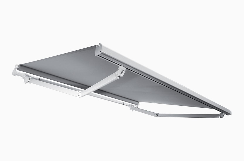 Universelles Modell mit klaren Linien, das gut zu verschiedenster Architektur passt – mit einer Breite von bis zu 500 cm und einem Ausfall von bis zu 300 cm, ideal für typische Terrassen und Balkone.